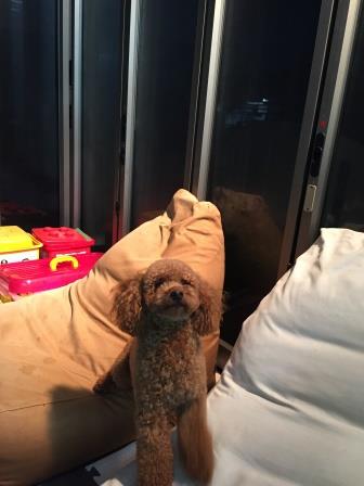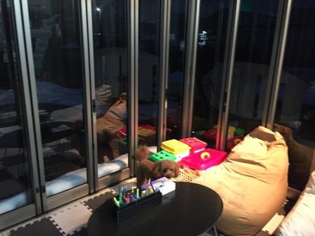 ジーマの中に照明をつければ夜でも愛 犬 と一緒にすごせます(^^)