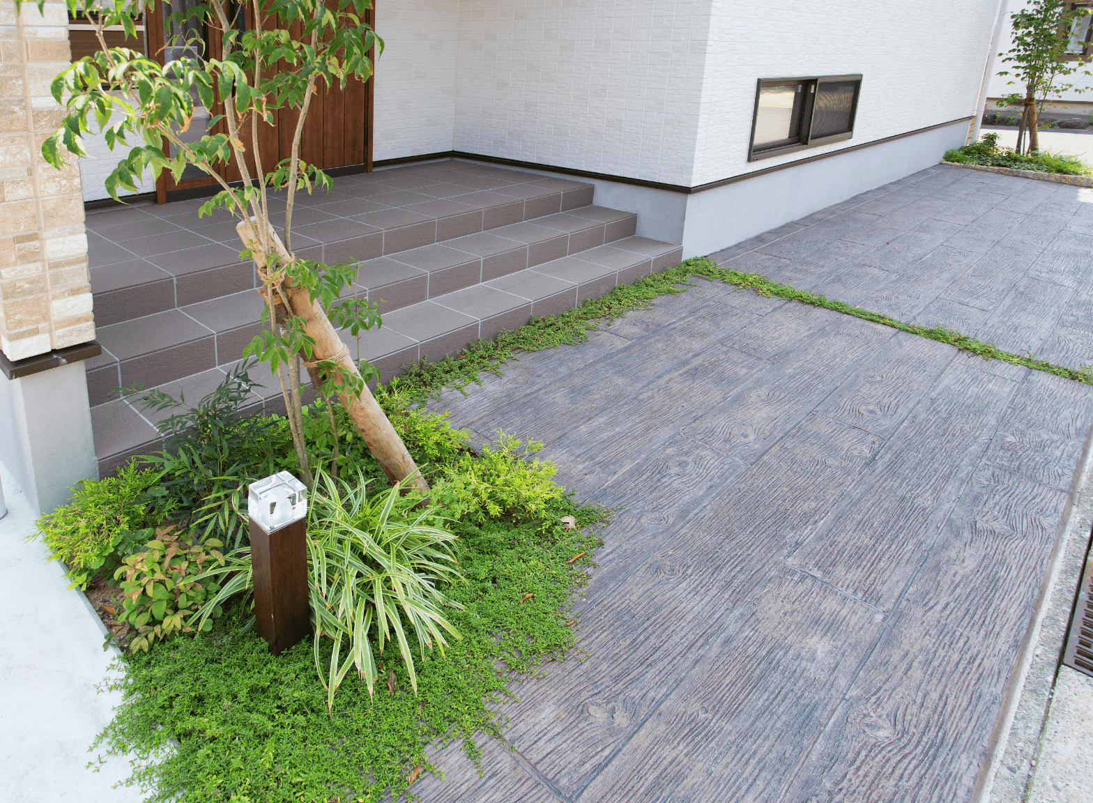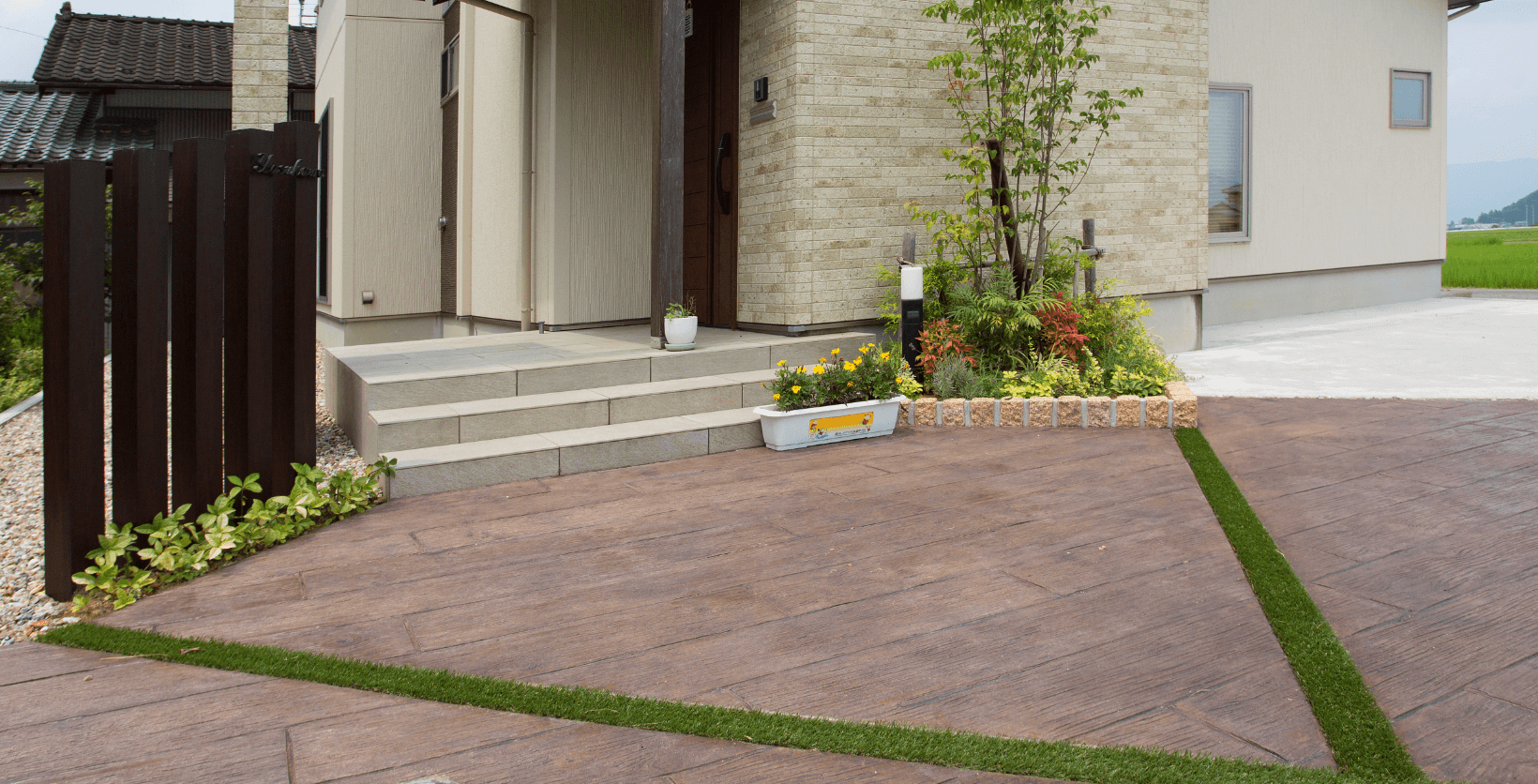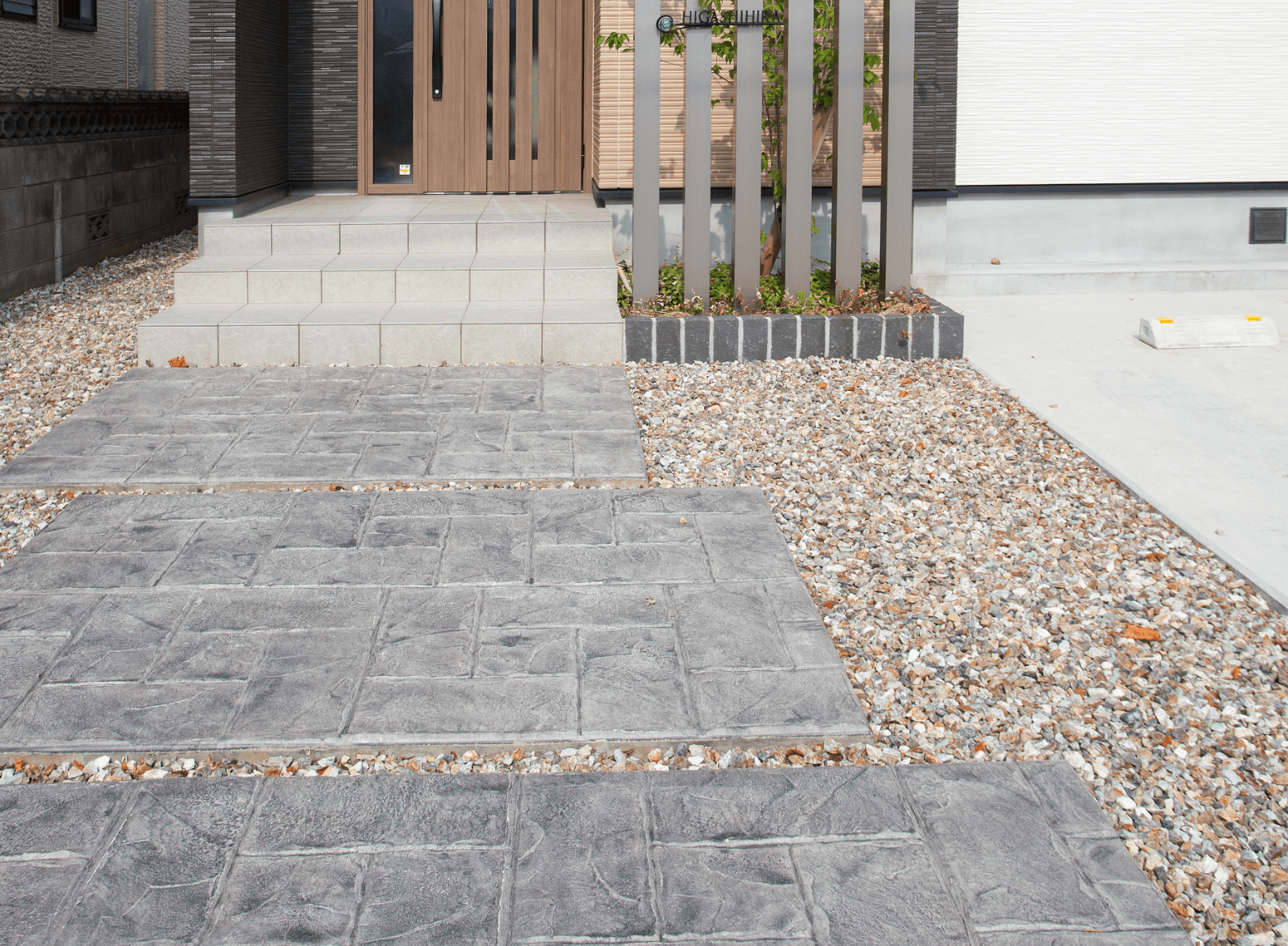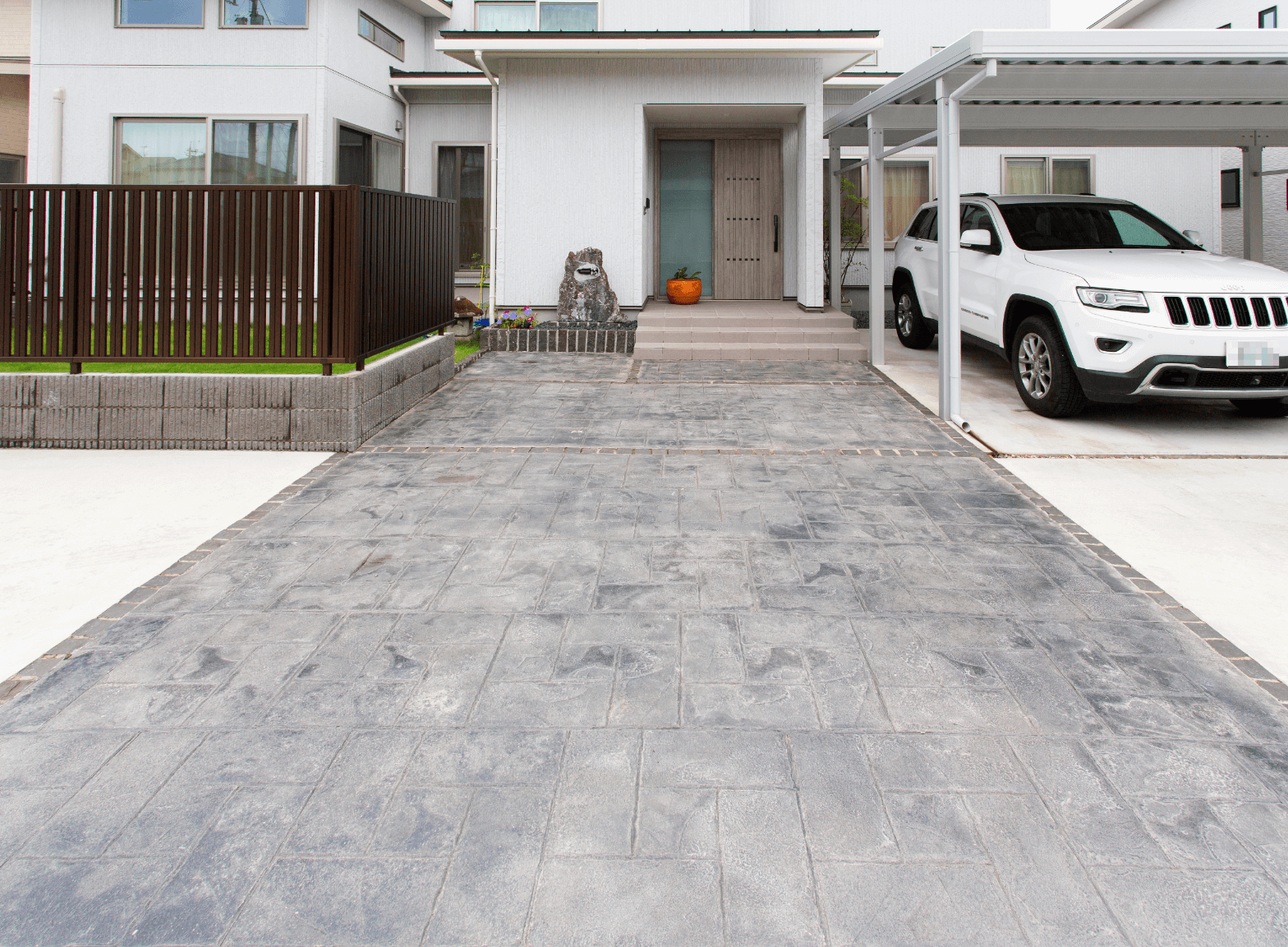 「汚れた駐車場をキレイにしたい」「今の外構デザインに飽きがきた」「本物の石は高すぎる。だけど石貼りみたいな雰囲気にしたい」といったお悩みに。