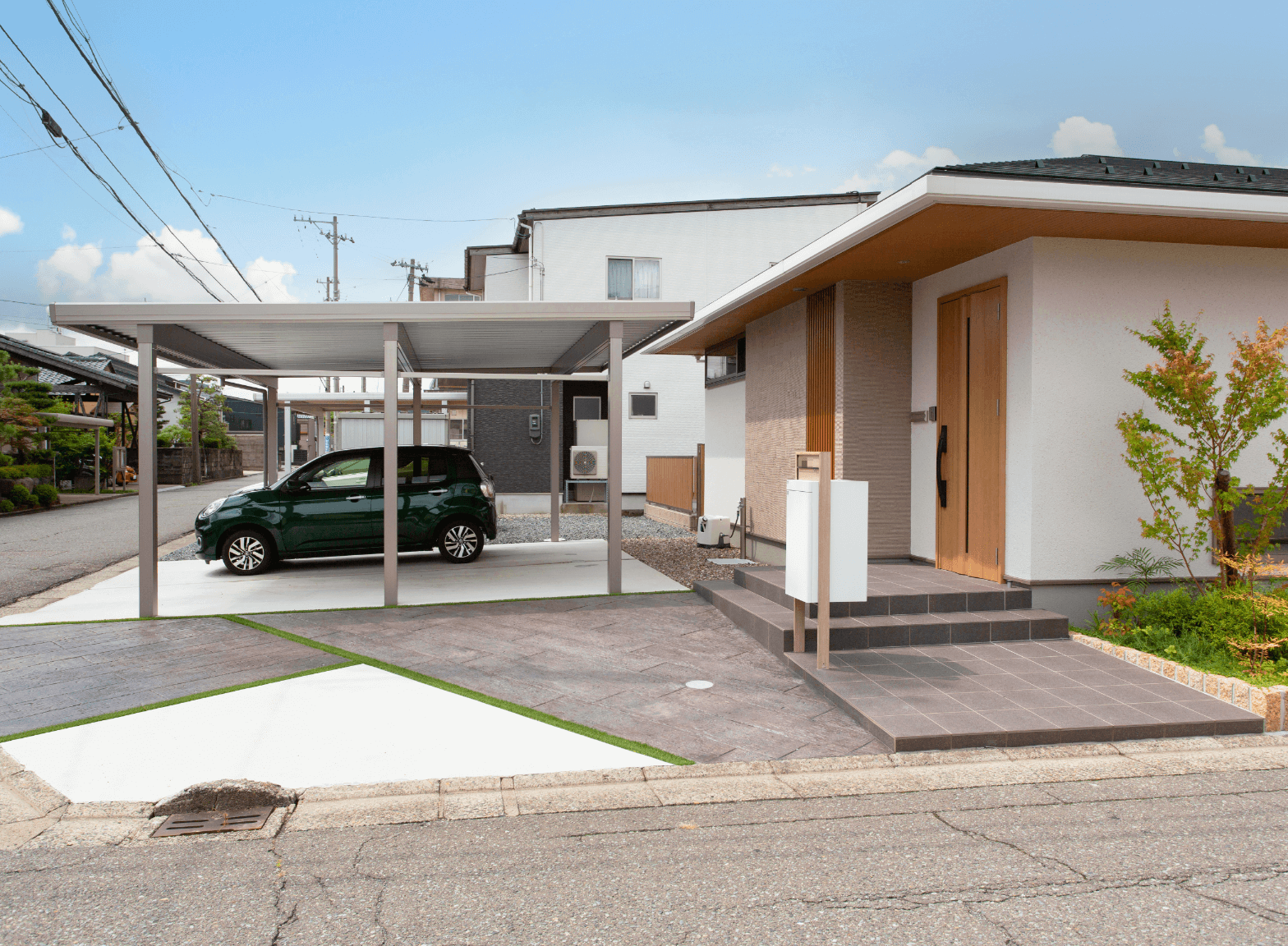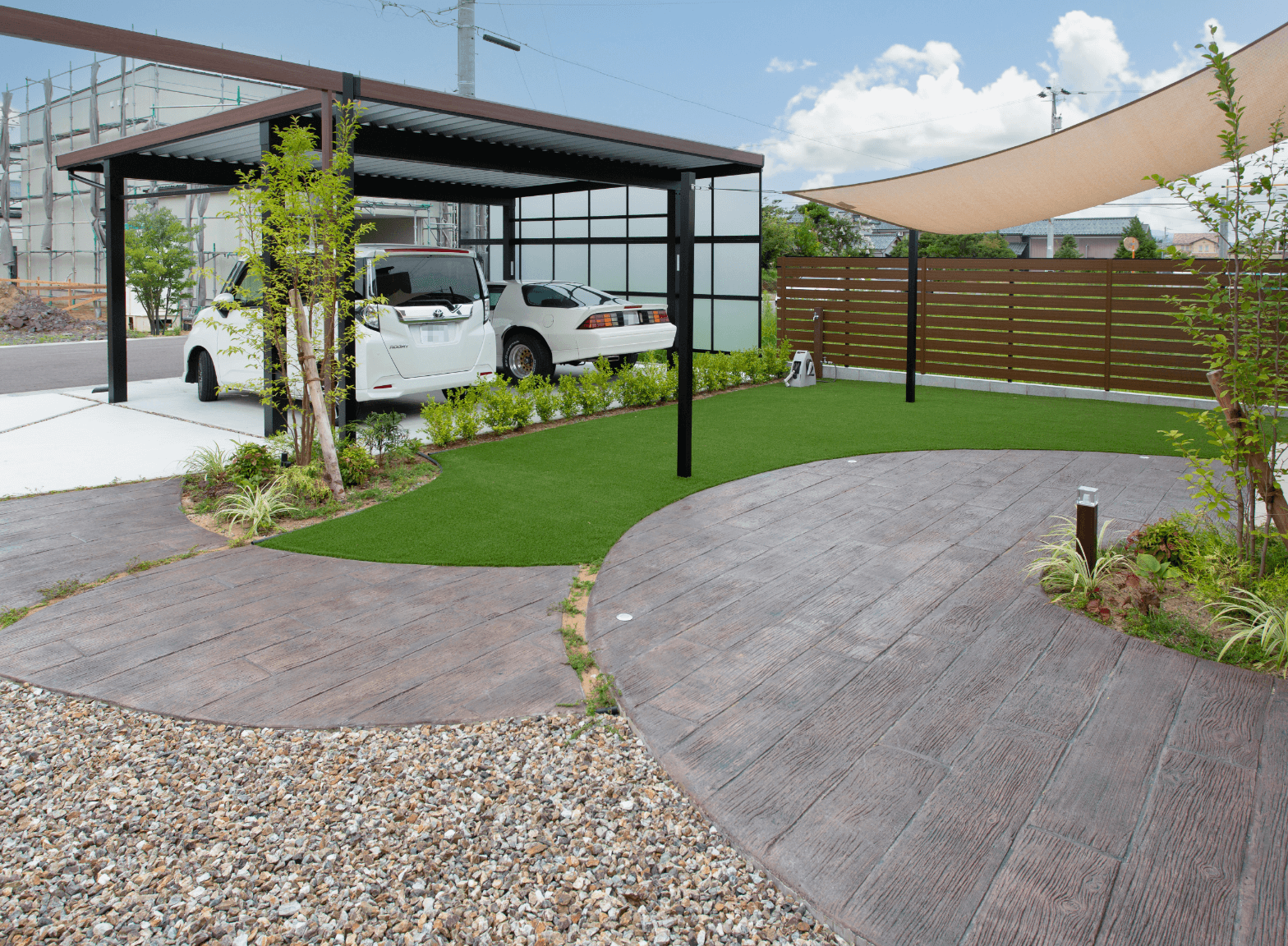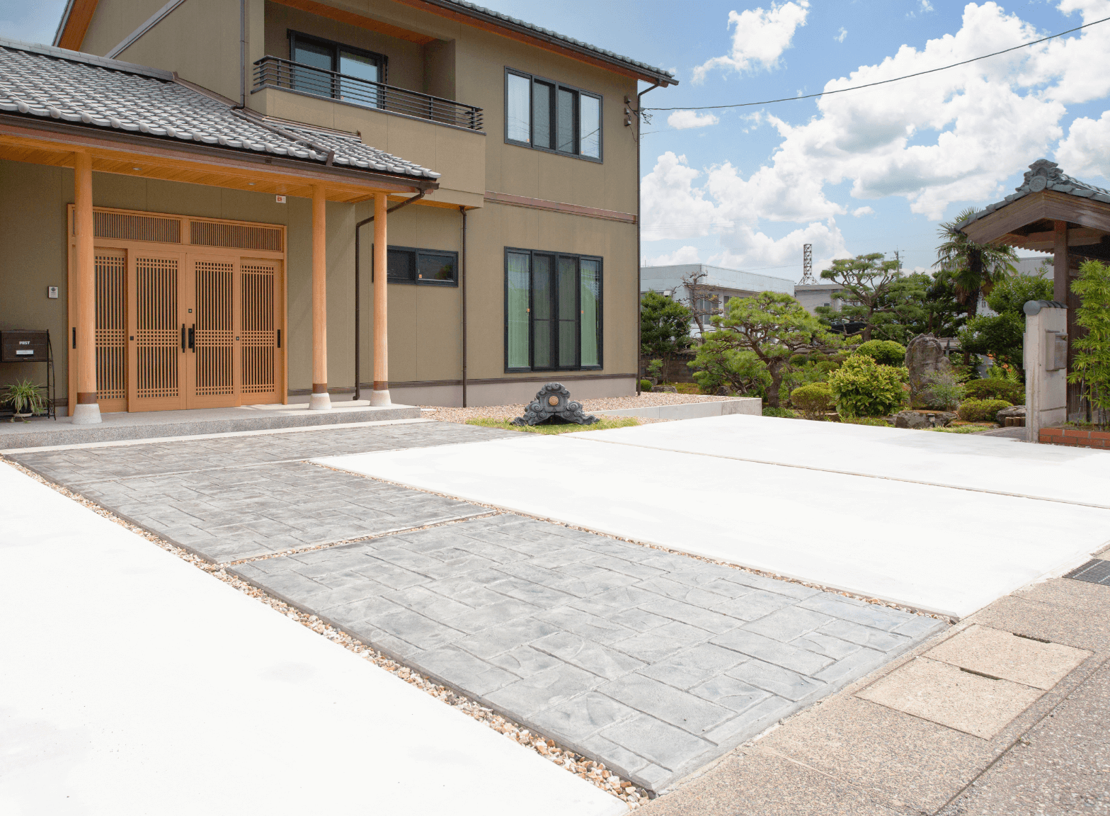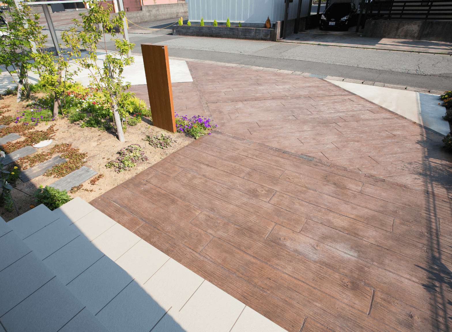 「汚れた駐車場をキレイにしたい」「今の外構デザインに飽きがきた」「本物の石は高すぎる。だけど石貼りみたいな雰囲気にしたい」といったお悩みに。