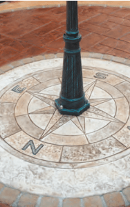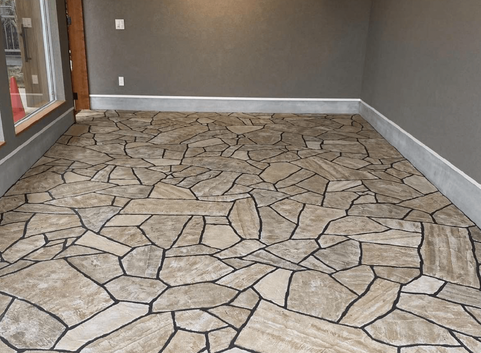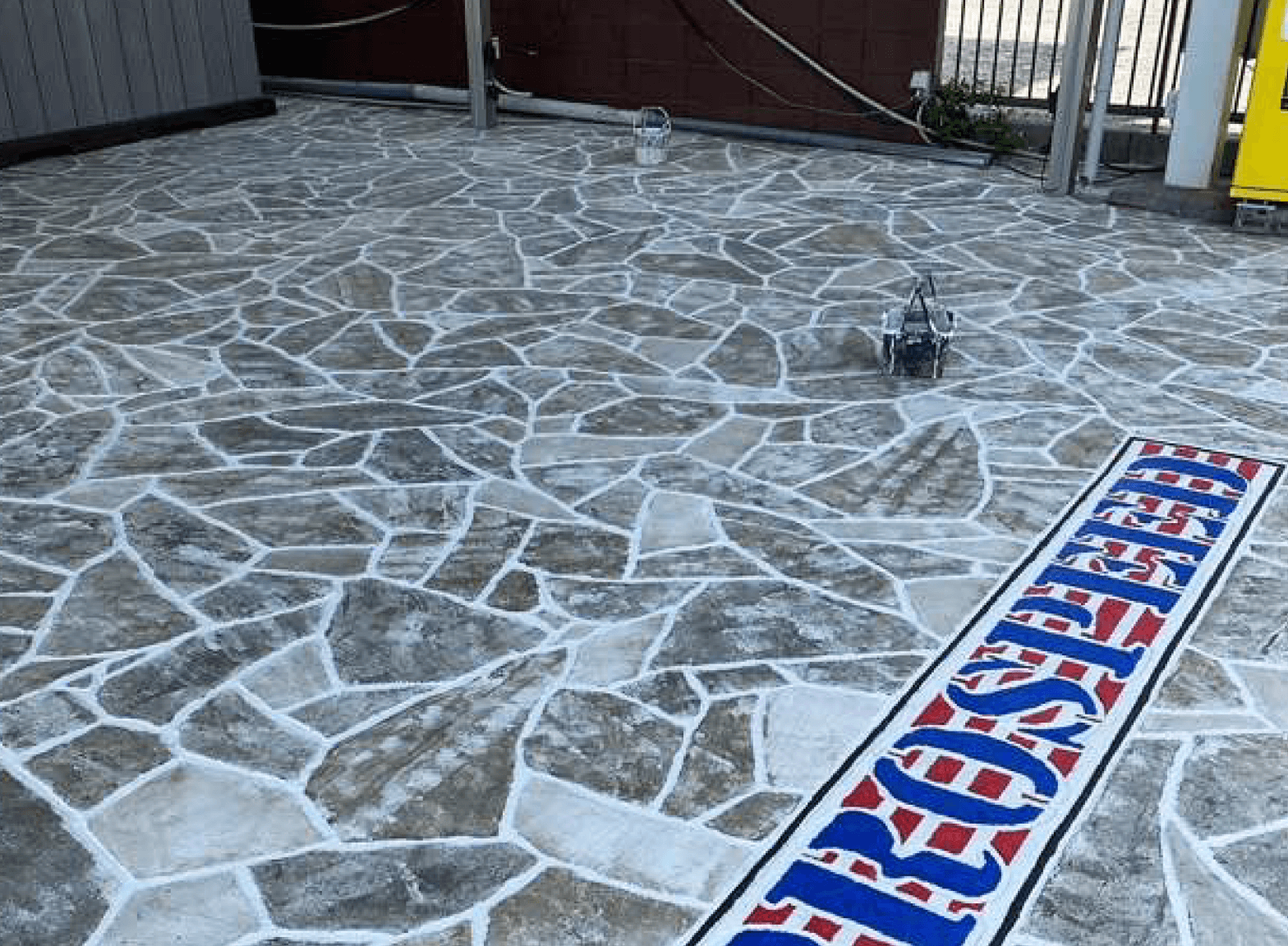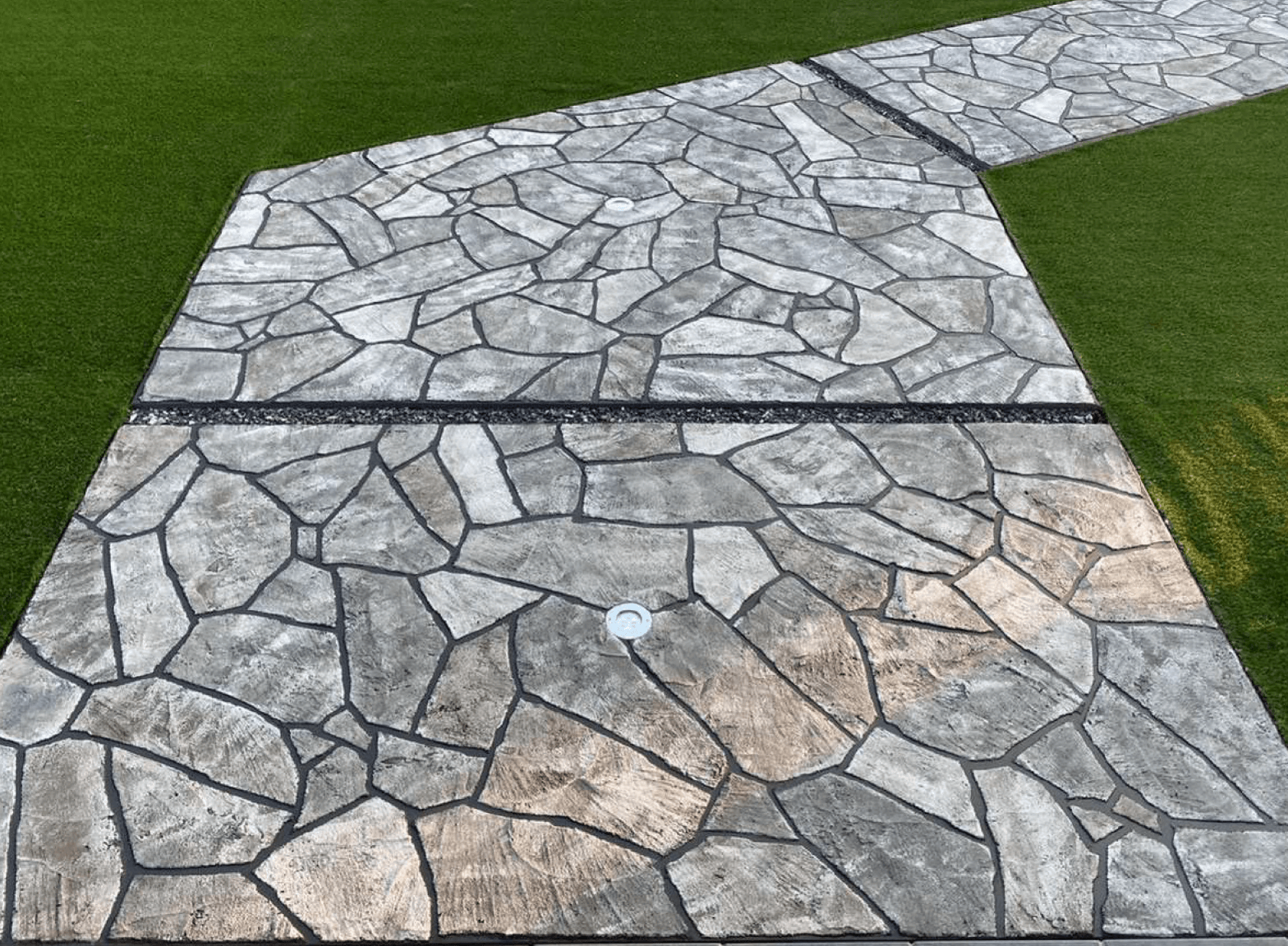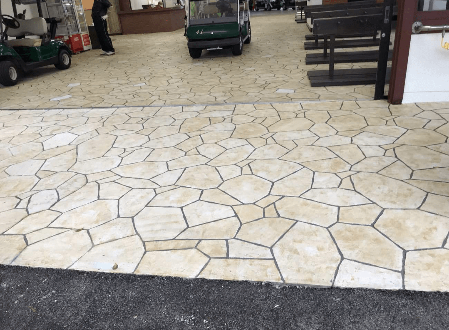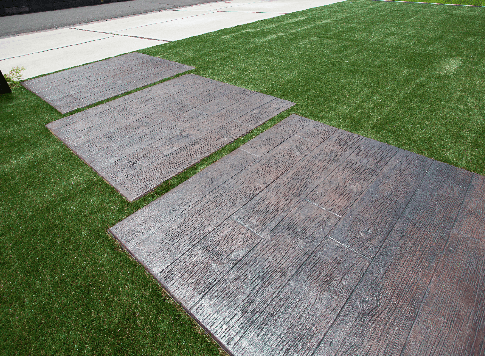 打設したコンクリートにスタンプを押すように、色と形を謄写して、自然石やウッドを表現する工法です。