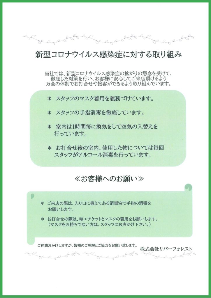 ご来店されるお客様にも、マスクや手指の消毒をお願いしております。(*- -)(*_ _)ペコリ