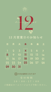 ・・・12月営業日のお知らせ・・・