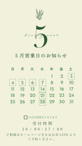 ・・・5月営業日のお知らせ・・・