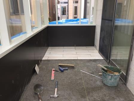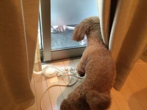 『こたろう』もタイル貼り職人の手元に興味深々です(^^)