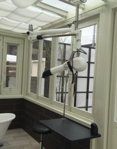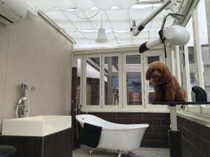 お庭を眺めながら愛 犬 のセルフケアができるガーデンルームです。