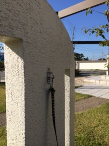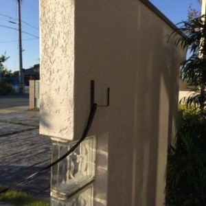 玄関前のモニュメント壁裏などに取付ると目立たずすっきり!