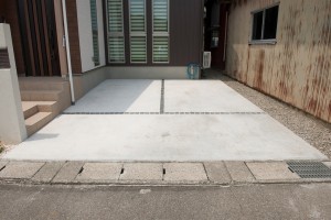 駐車場部分もただコンクリートにするだけでなく、ピンコロでラインをつけ