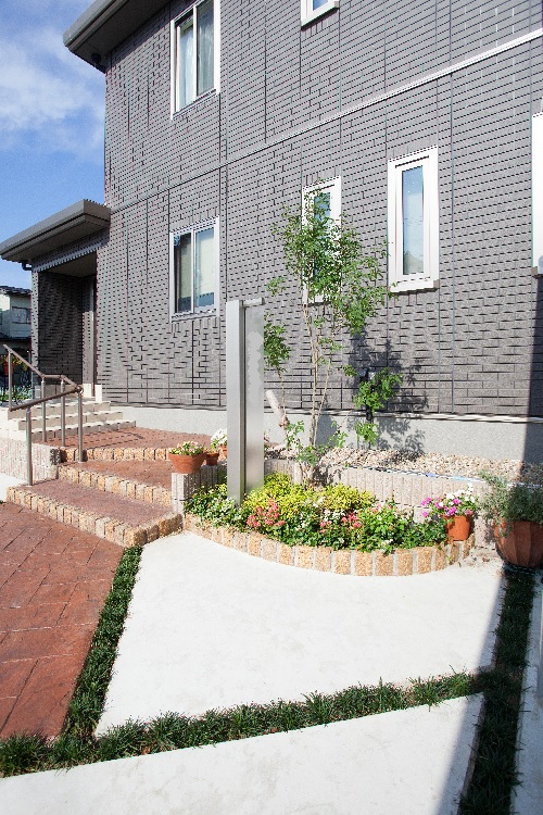 おしゃれな アプローチ 外構 福井 モニュメント YKK ルシアスサインポール