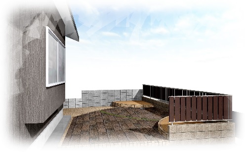 お庭 リフォーム おしゃれな フェンス マットスタンプ