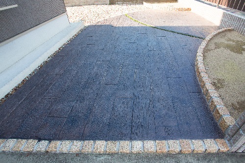 中庭にはマットスタンプ、ビンテージウッド柄を施工しました😳