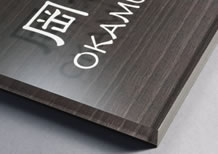 この表札は木調の板の上に透明のアクリル板を重ねました。
