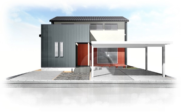 折板カーポートは、建物のサッシの色に合わせてナチュラルシルバーを。