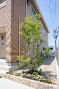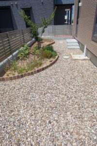シンボルツリーと、地被で目隠し代わりの緑を植えました。