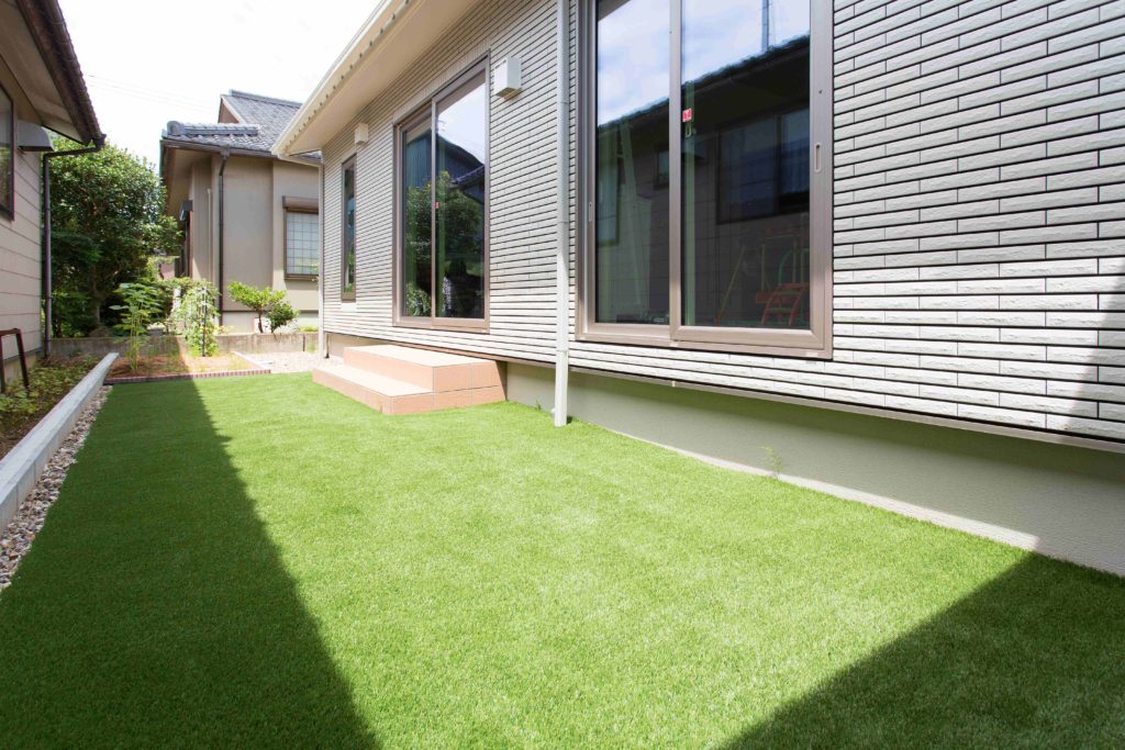 後ろにはちょっとした菜園スペースと人工芝もあるので趣味や遊びの時間も楽しめます。