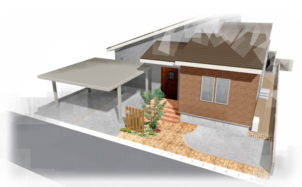 今回は白とオレンジの明るくナチュラルな外観のお家の外構を、イメージパースと完成写真の二回に分けて紹介していきます。