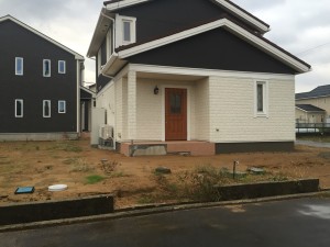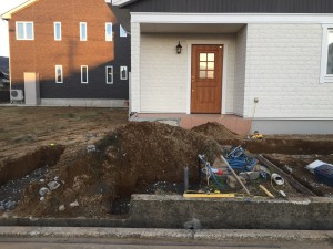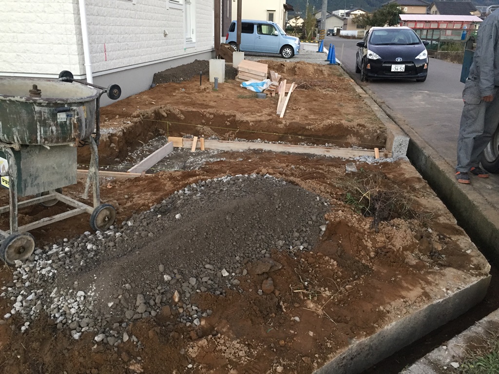 また、駐車場側も庭との段差ができるので土留めに化粧ブロックを施工します。
