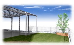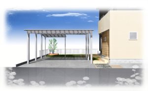 カーポート 外構 人工芝 スタンプコンクリート テラス