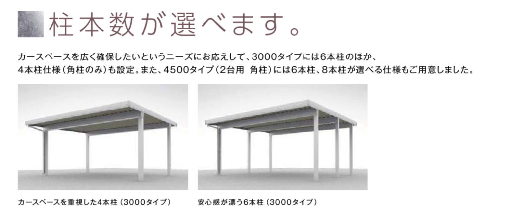 3000タイプには、柱の本数も4本か6本のどちらかを選ぶことが出来、