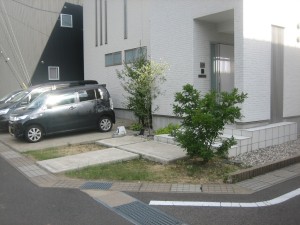 2015/03/26ガーデンリフォーム マットスプレー プラスG ライトアップ デザイナーズパーツ 福井県 福井市 こんにちはリバーフォレストのマダヨです。 今月も引き続き福井市のH様邸のご紹介をします。 今日はいよいよ正面のプラスGの紹介です。 まずは施工前 こちらが施工後 アプローチの面積が増え、その周りをプラスGで囲いました。 道路側からはデザイン格子で目隠し。 駐車場側からは高さを変えたGフレームで立体的にデザイン。 もちろん夜はライトアップで華やかに。 お客様も満足の外構になりました。