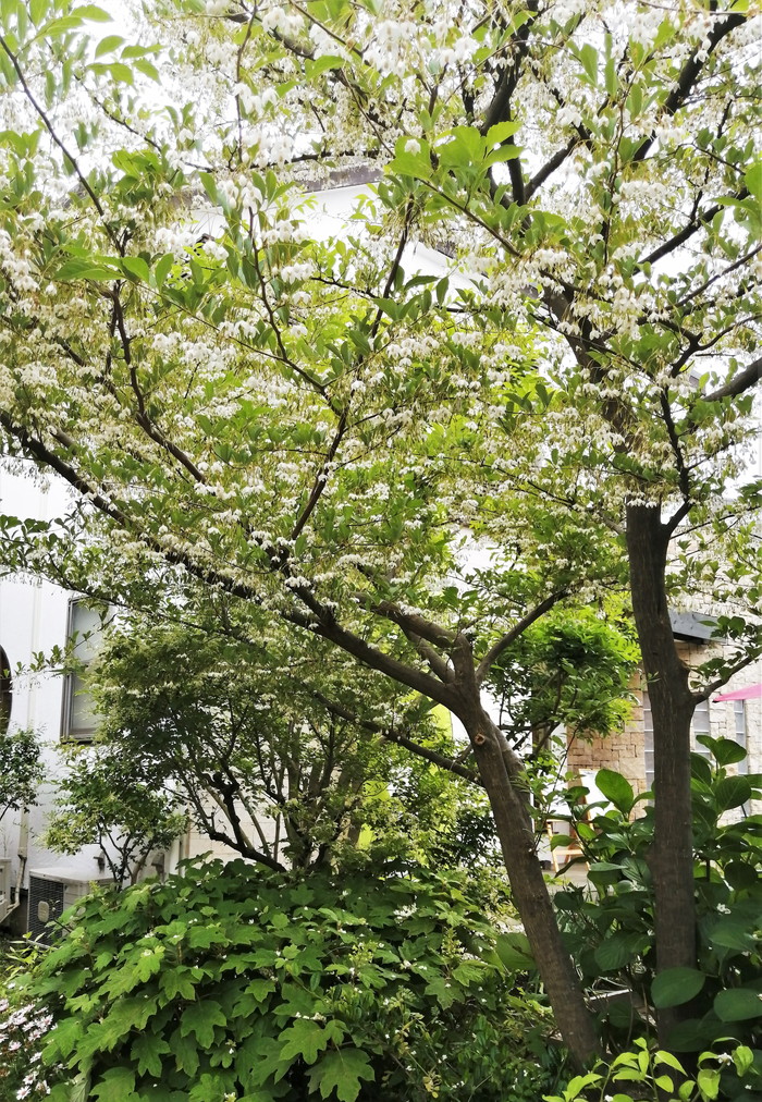 5~6月頃、白い花が鈴なりにぶら下がって咲き、独特の美しさがあります。