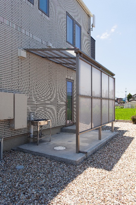 スタンプコンクリート テラス屋根 実用的な おしゃれ 外構