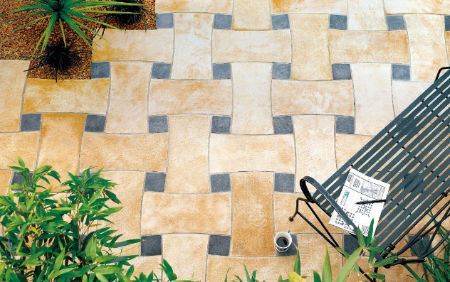 籐を編みこむような印象的なデザイン。より広い範囲に敷き詰めることで、編み模様のイメージがより強調されます。