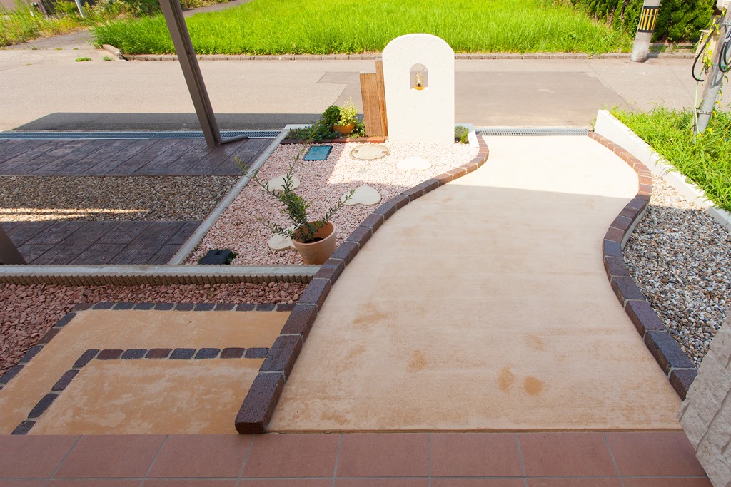 スロープと階段のコンクリートはカラーコンクリートを施工しました。
