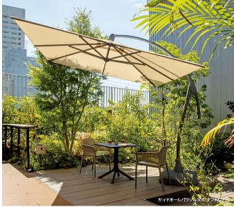 日除けとしてお庭で使える新商品パラソルを、タカショーより
