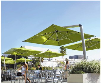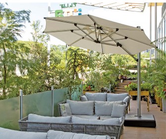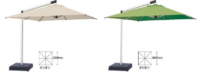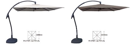 オーニンググレードのナチュラルな2カラーを使用した大型スクエアパラソルです。