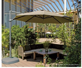 タカショーのパラソルは、ガーデンファニチャーに屋根を取り付けたような感覚で、