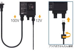 12Vに変換することで得られる最大のメリットは、電気に触れても感電の心配がなくなること。