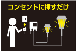 ソーラーライトとは違い、天候や設置条件などに左右されずに安定した明るさをご提供いたします。
