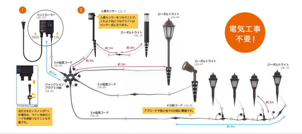 ローボルトライトだから電気工事士の資格が不要で誰でも設置可能です。