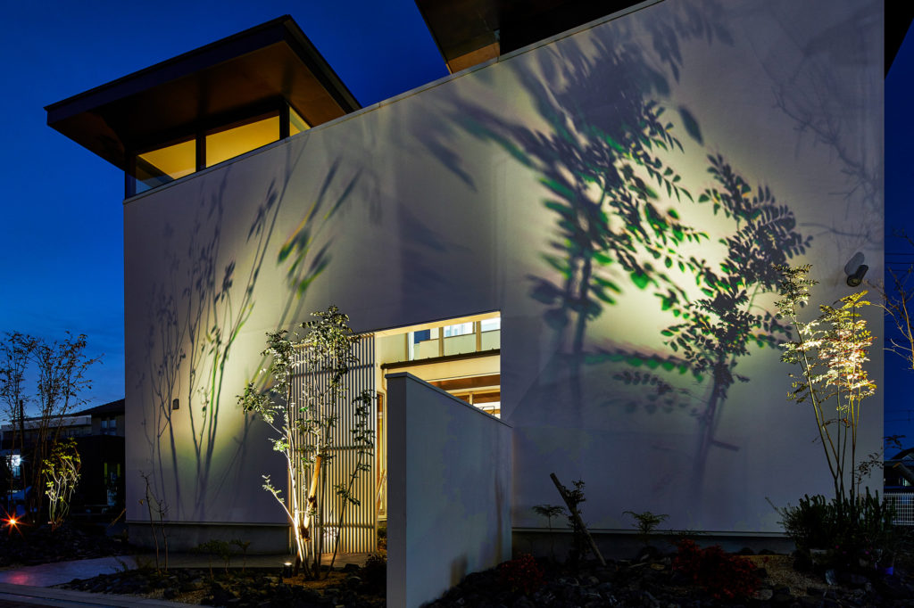広い外壁がある住宅には最も人気のある”シャドーライティング”。