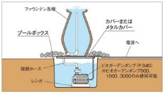ポンプで水が循環するので、水が蒸発しない限り流れ続けます。