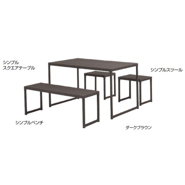 シンプルスクエアテーブルの下にベンチもスツールも収納できるので、