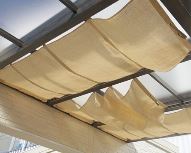 オプションでシンプルシェード(左)やロープ式開閉シェード(右)もあり、