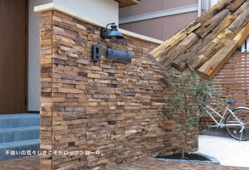 古材独特の粗野でワイルドな表情は、インパクト絶大。