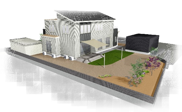 建物が白×黒のシンプルな色合いだったので、外構自体も白(シルバー)×黒のモノクロカラーで仕上げます(*´▽`*)