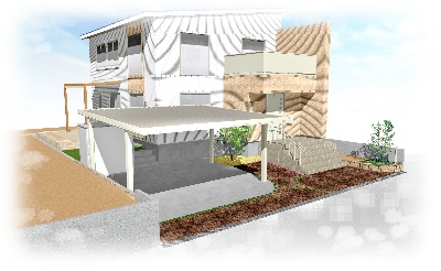 M様邸は、スタンプコンクリート、カーポート、お庭にタイルテラスとLIXILの自然浴ジーマと施工させて頂きました♪