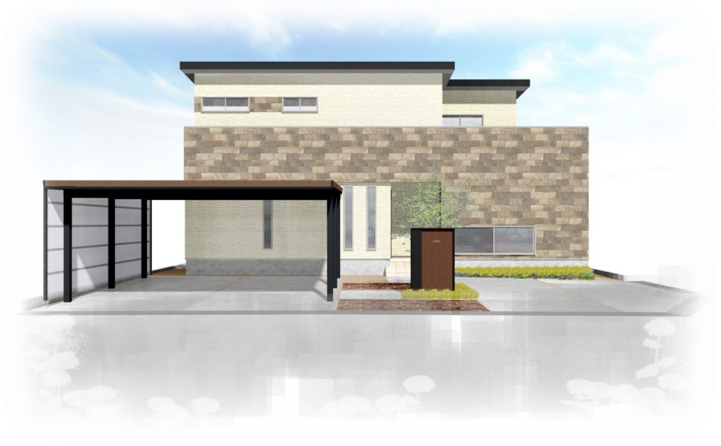 全体的に茶系のあたたかみのある色味で統一し、植栽で自然の色をさしてカーポートの柱の黒でしめています💪