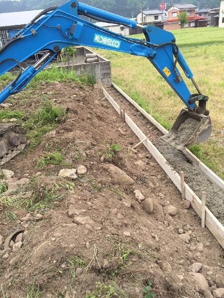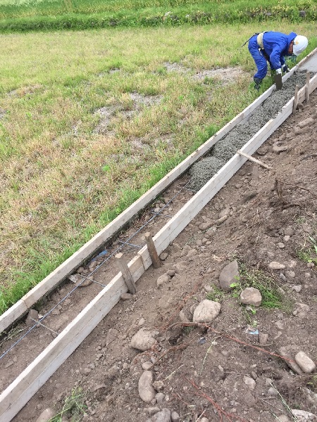 2016/06/12ブロック ブロックベース 境界 鉄筋 外構工事 生コン リバーフォレストのYYです。 今回は境界のブロックの施工についてご紹介致します。 境界は外構工事においてとても大事な事です。 ブロックを施工する前段階でブロックベースを施工します。型枠を組んで鉄筋を這わせます。 型枠の中に生コンを流し込みます。 流し込みながらきれいにならしていきます。 鉄筋を均等間隔で施工し生コンがかたまったら型枠を外します。 ブロックを積んで完成です。 ブロック ブロックベース 境界 鉄筋 外構工事 生コン