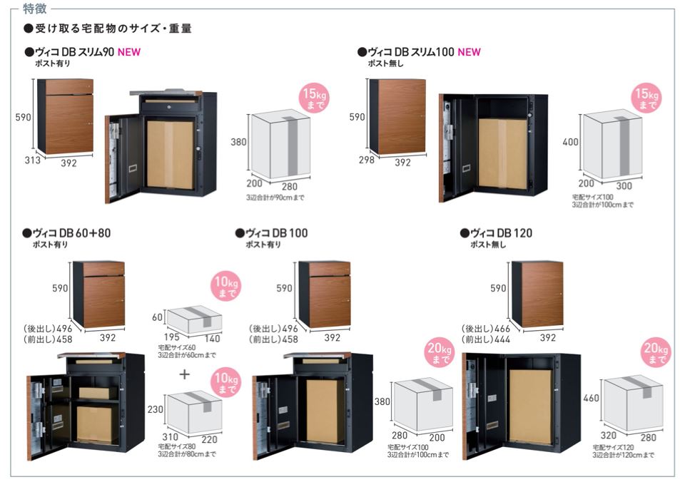 壁付けもできるスリムタイプから大きな宅配物を受け取れるタイプまで揃っています。