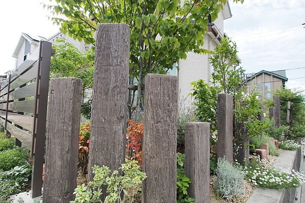 味わい深く、お庭を足元から演出してくれるレイルスリーパー。
