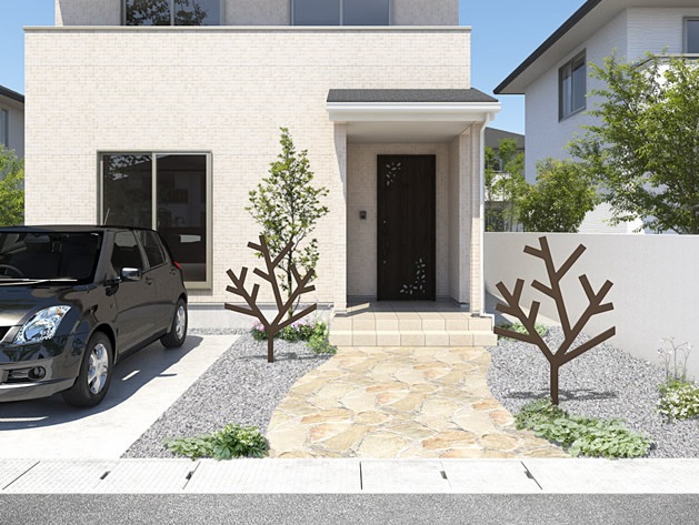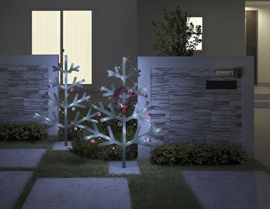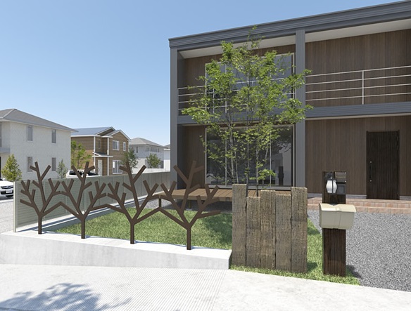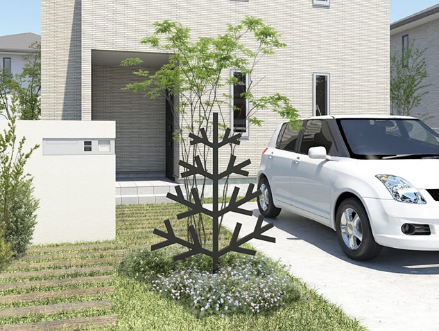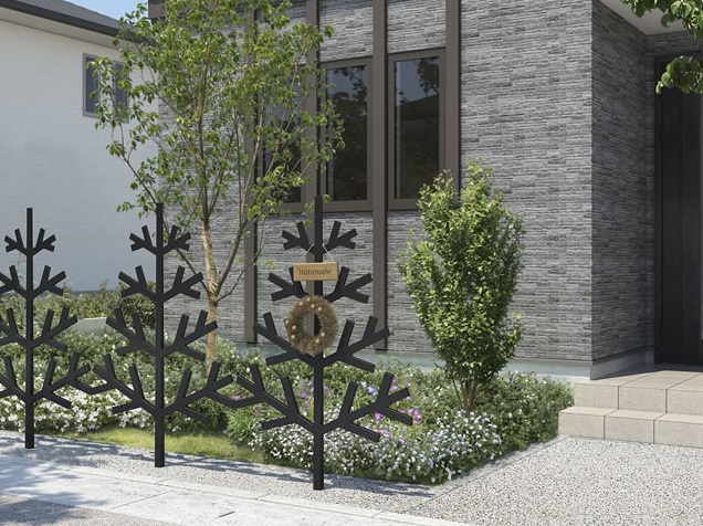 樹木型フェンスはたとえば一本でシンボルツリーのように設置しデコレーションを楽しんだり、
