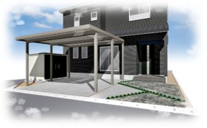 カーポート脇に目隠しを兼ねた物置を置くスペースを希望してました。