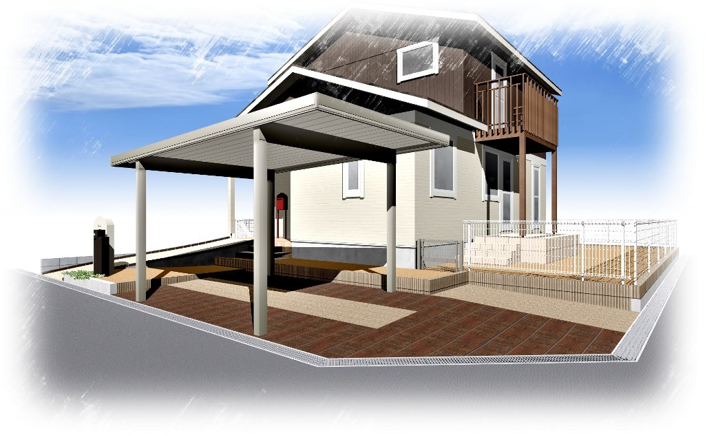 全体的に建物と外構の色を合わせることにより統一感が出ます。