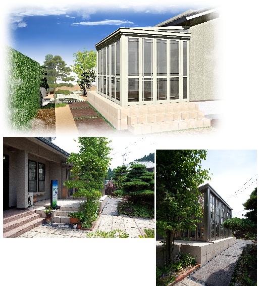 ガーデンリフォーム タイルテラス スタンプコンクリート メンテナンスフリー