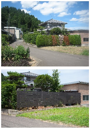 既存生垣を撤去し、目隠しフェンスとして、Bウッドフェンスの施工後写真です。