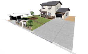 坂井市 外構リフォーム 天然芝 マットスタンプ カンナキュート リアルウッドランバー